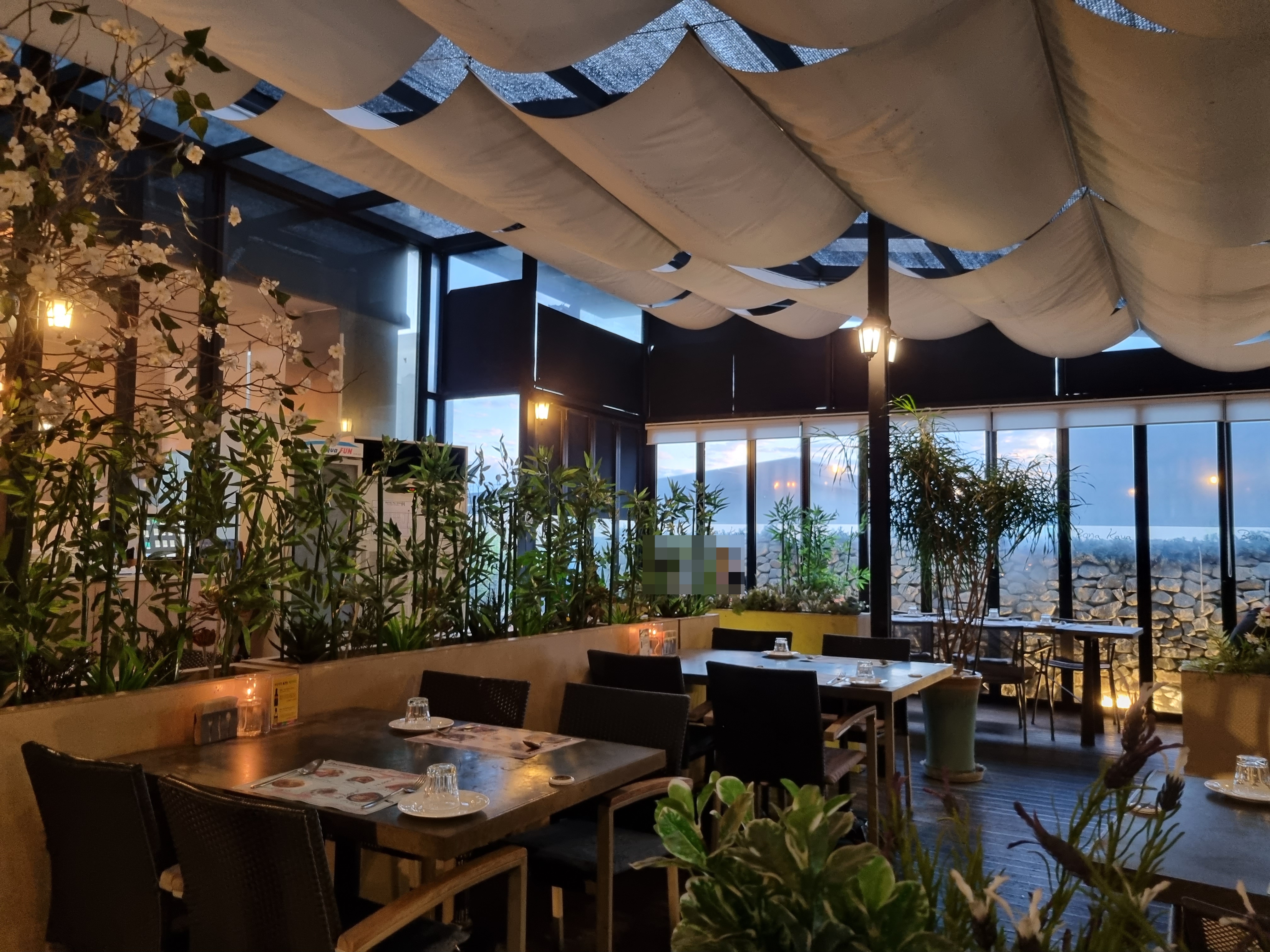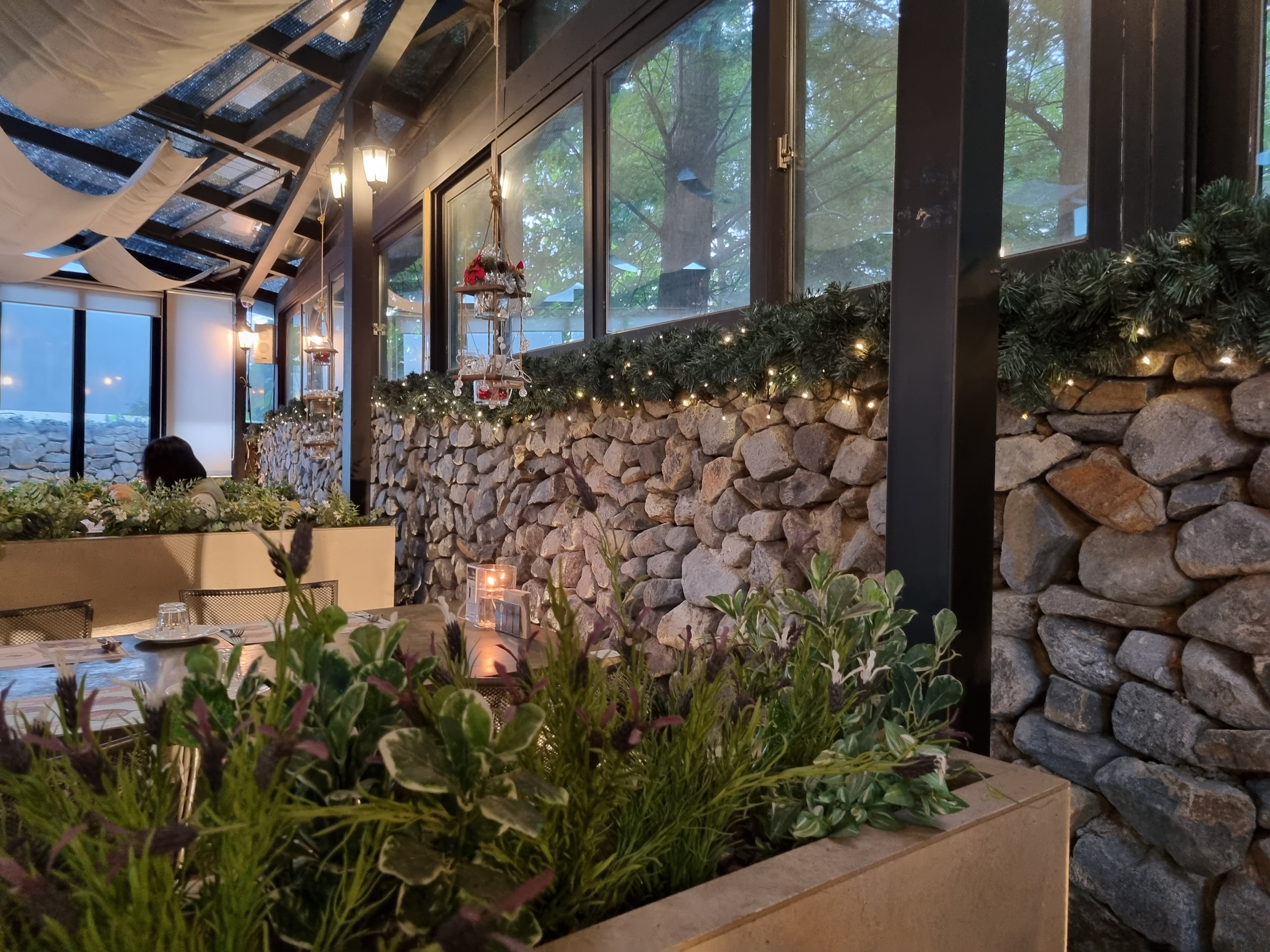 이곳은 야외 느낌이 나는 실내 테이블입니다.