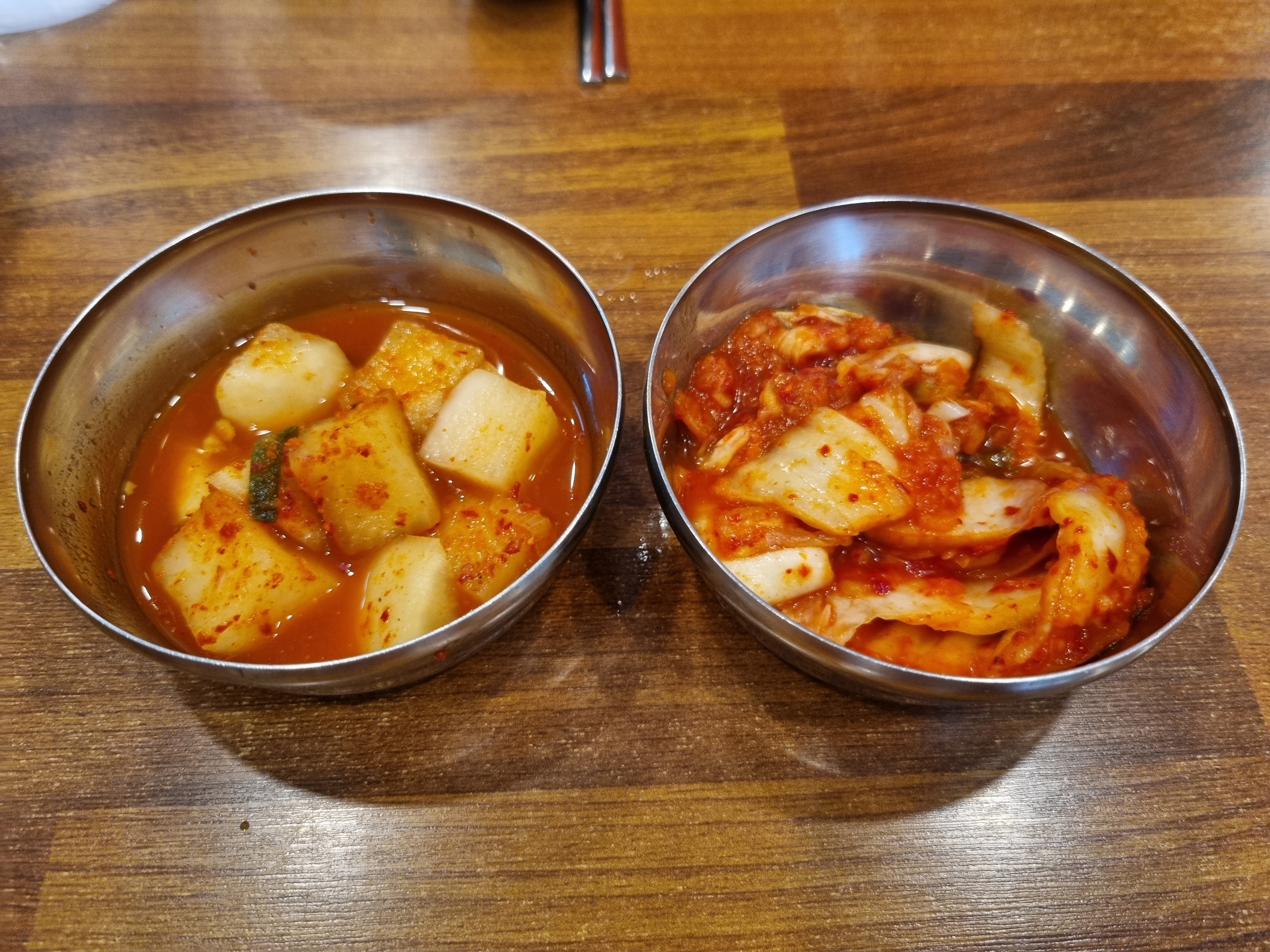 국밥과 함께 먹을 깍두기와 김치가 세팅이 됩니다.