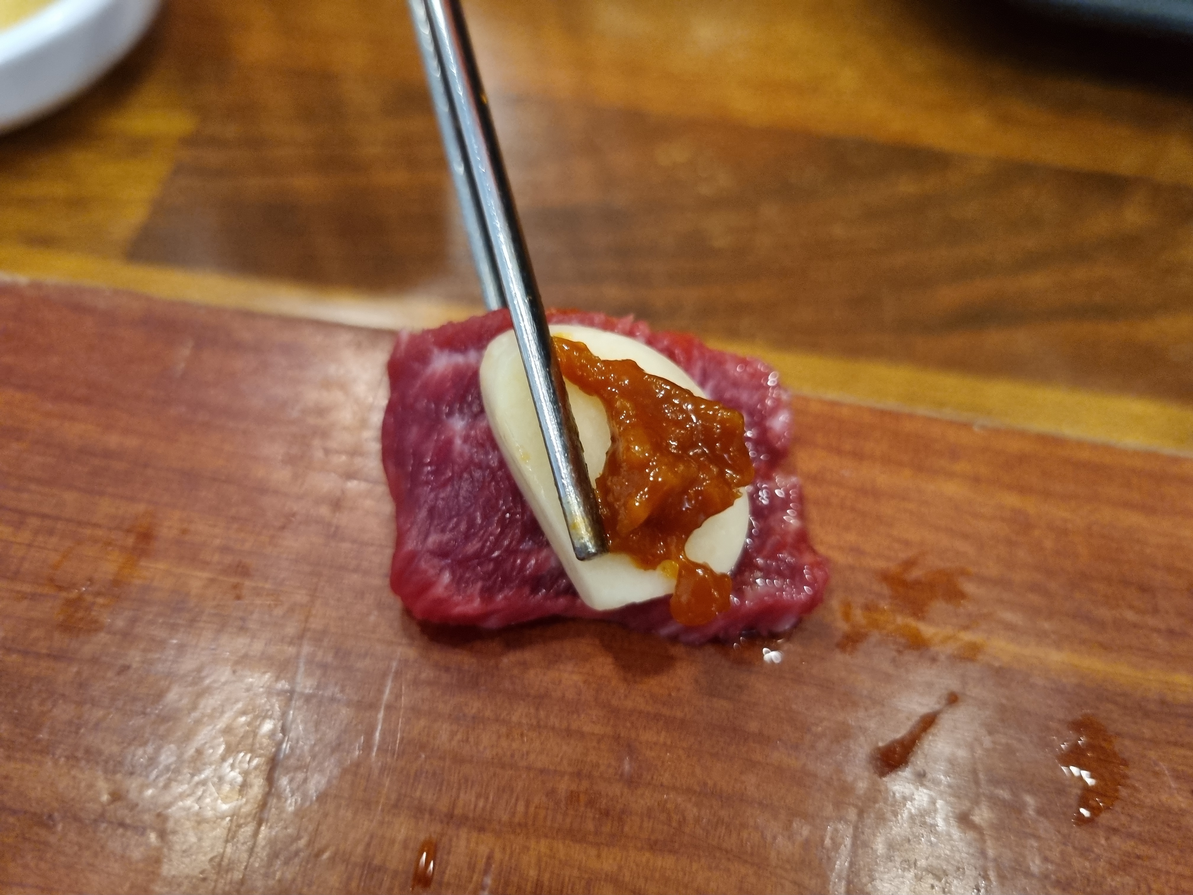 무엇보다 이렇게 쌈장을 올린 마늘과 함께 먹으면 아주 꿀맛입니다.
