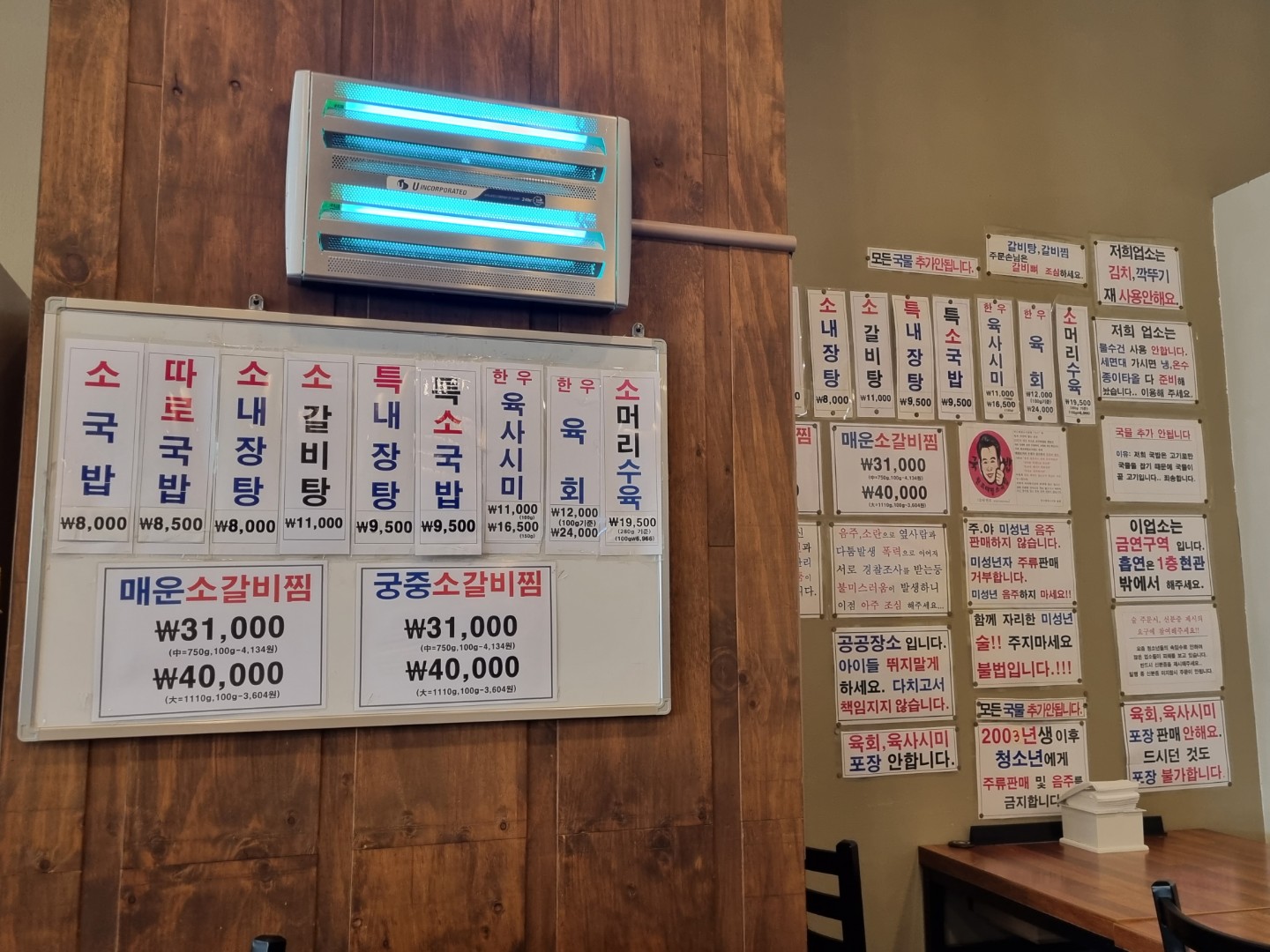 한 쪽 벽에는 이렇게 계속 메뉴판과 안내문이 붙어있습니다.