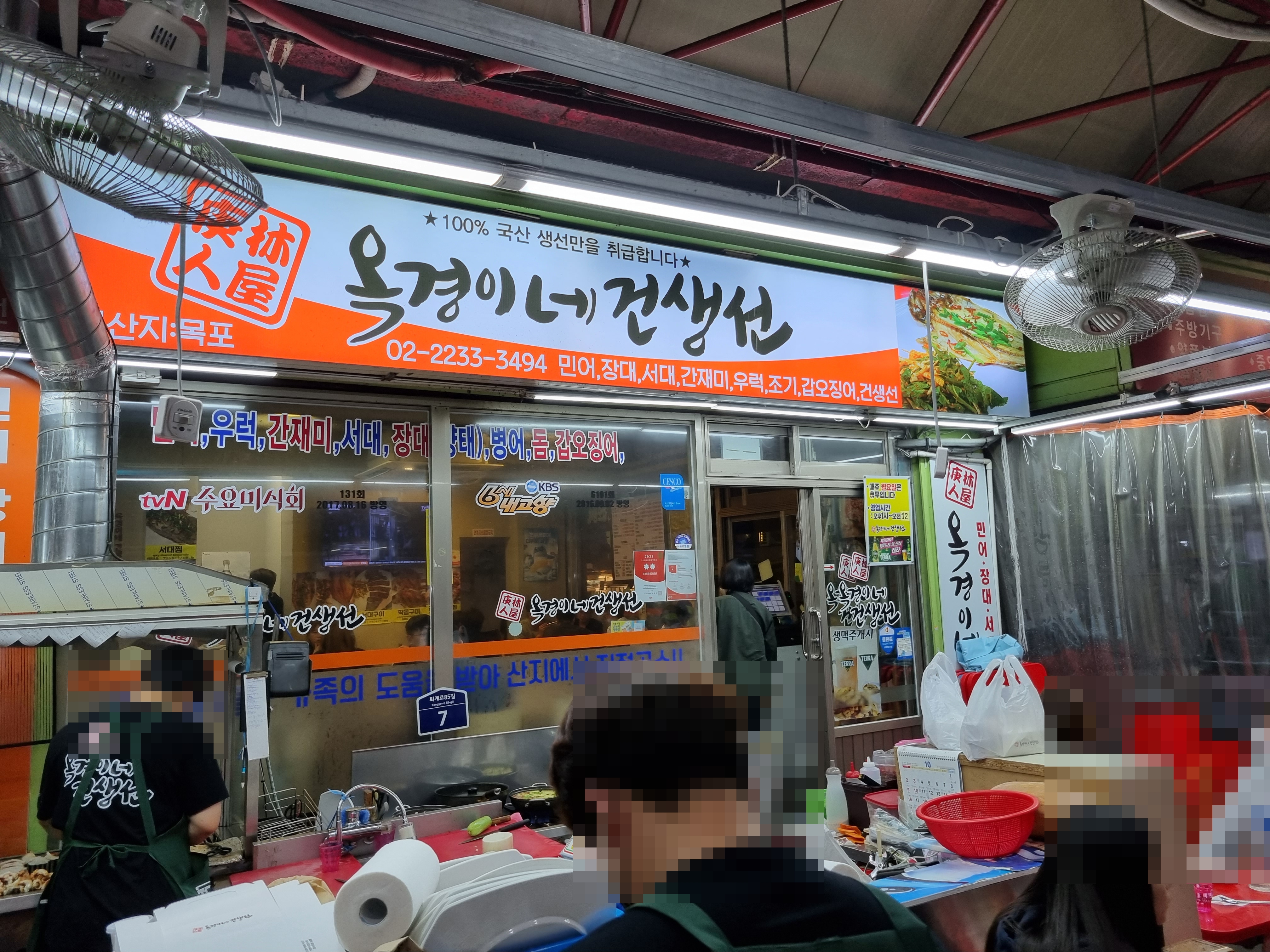 중앙시장 입구에서 그리 멀지 않은 곳 왼편에 위치한 옥경이네건생선입니다.