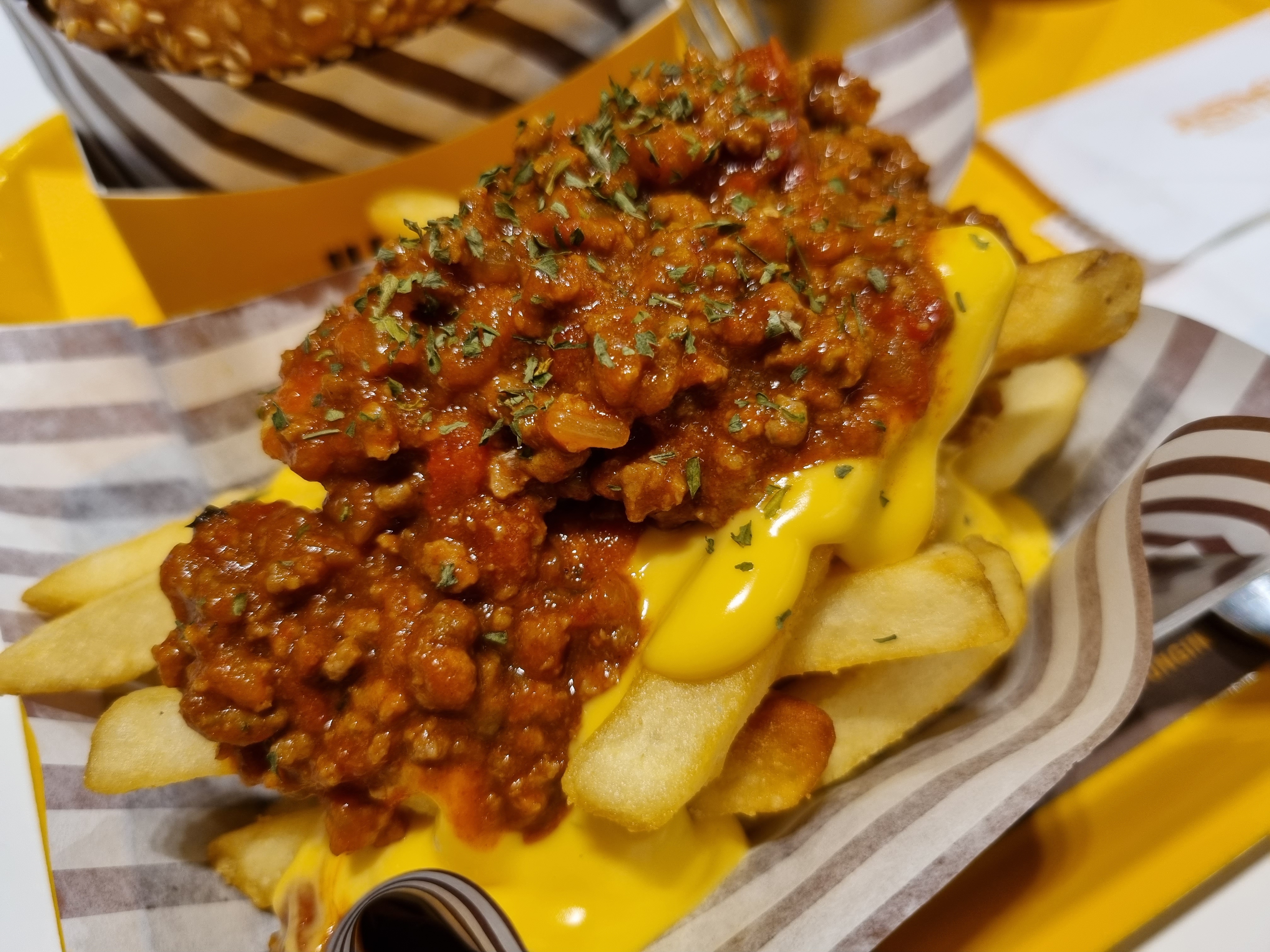칠리 소스와 치즈가 같이 어울러지고 감자 튀김은 적당히 튀겨져서 겉은 바삭하고 속은 촉촉한 겉바속촉 느낌이 났습니다.