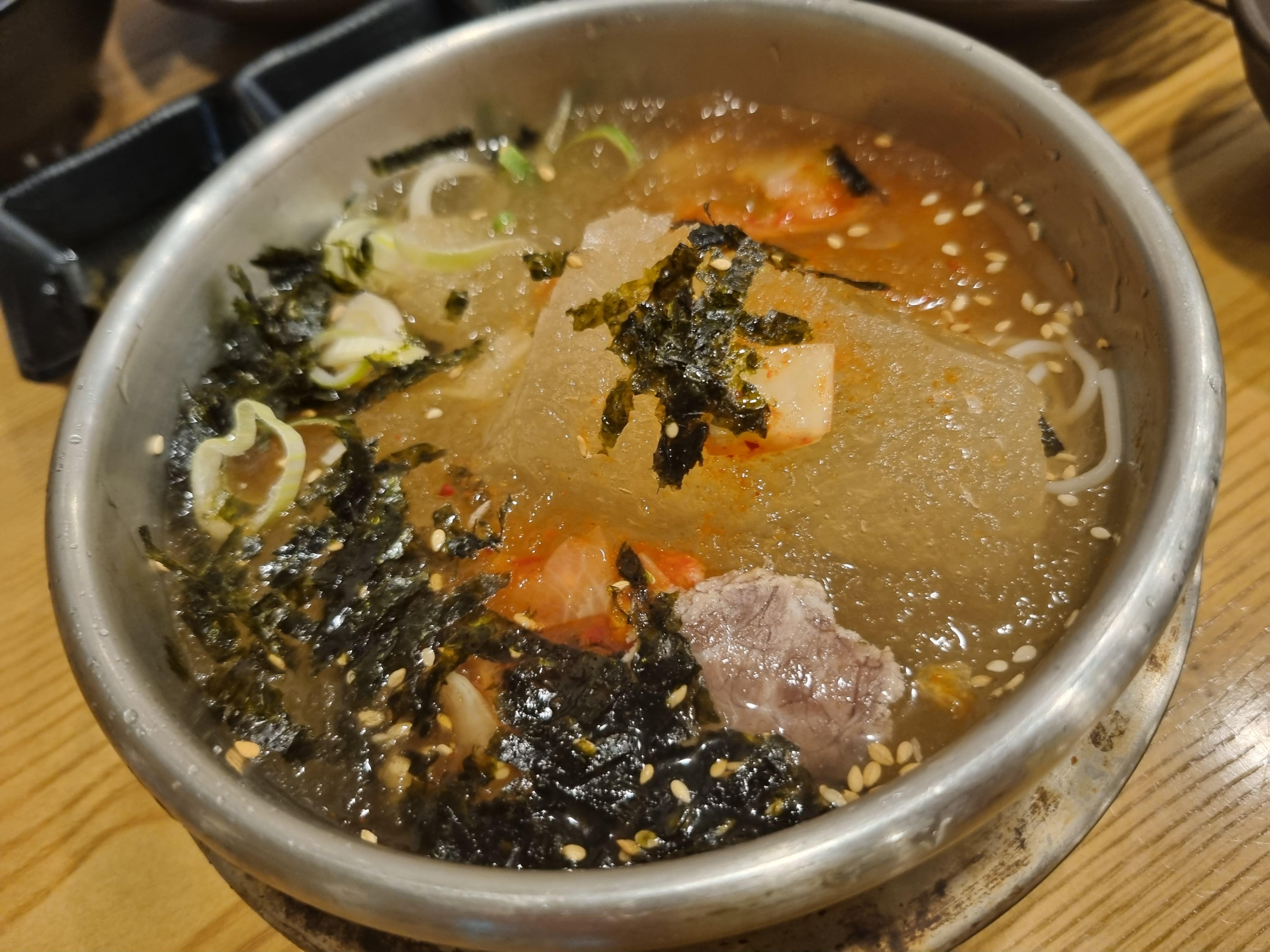 처음에 나온 김치말이국수의 맛이 너무 강하고 맛있어서 이 국물엔 손이 덜 갔는데 이것도 맛이 좋았습니다.