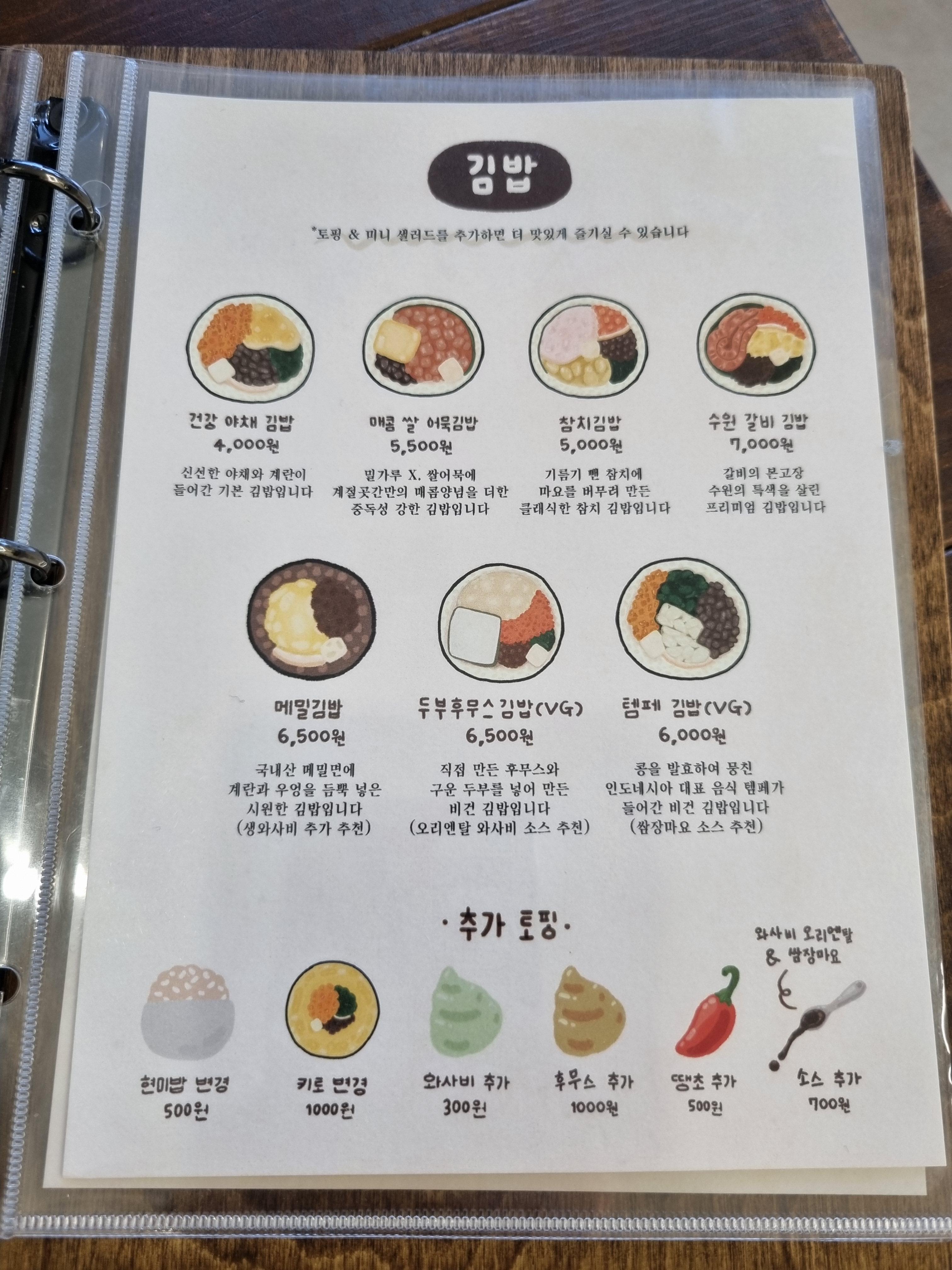 이렇게 설명만 봐도 아 여기는 옛날에 유행했던 단어인 웰빙 그 자체인 김밥집이구나라는 생각이 듭니다.