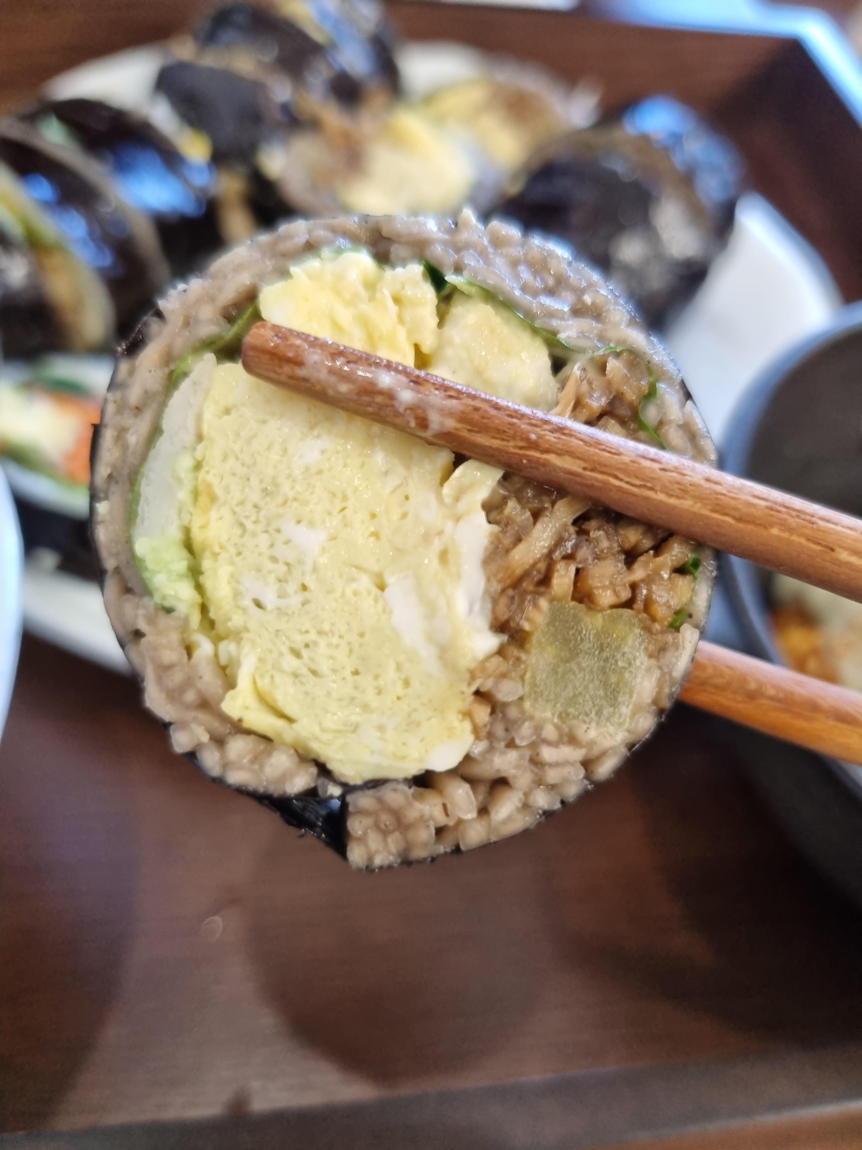 계절곳간 김밥 중 추천을 한다면 메밀김밥을 꼭 드셔보시길 추천합니다.