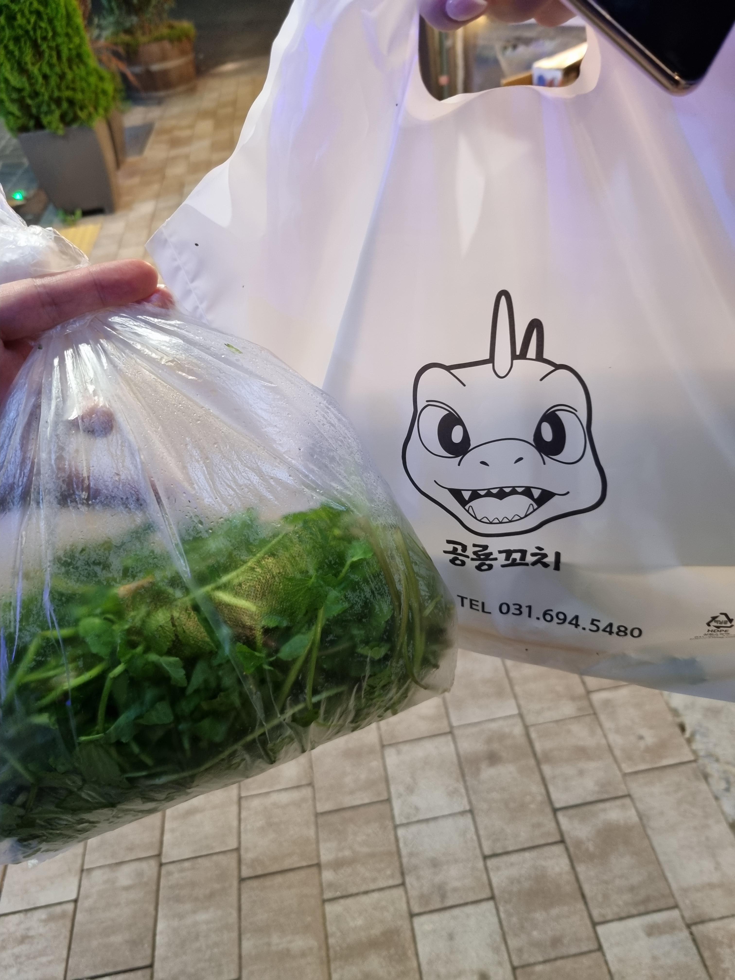 이렇게 꼬치와 정체모를 풀때기를 들고 돌아다니다가 편의점에 갔더니 편의점 사장님께서 그게 뭐길래 들고다니냐고 물어보셨고 이래 저래 설명을 드리니 미나리인것 같다고 잘하셨다고 칭찬도 해주셨습니다.