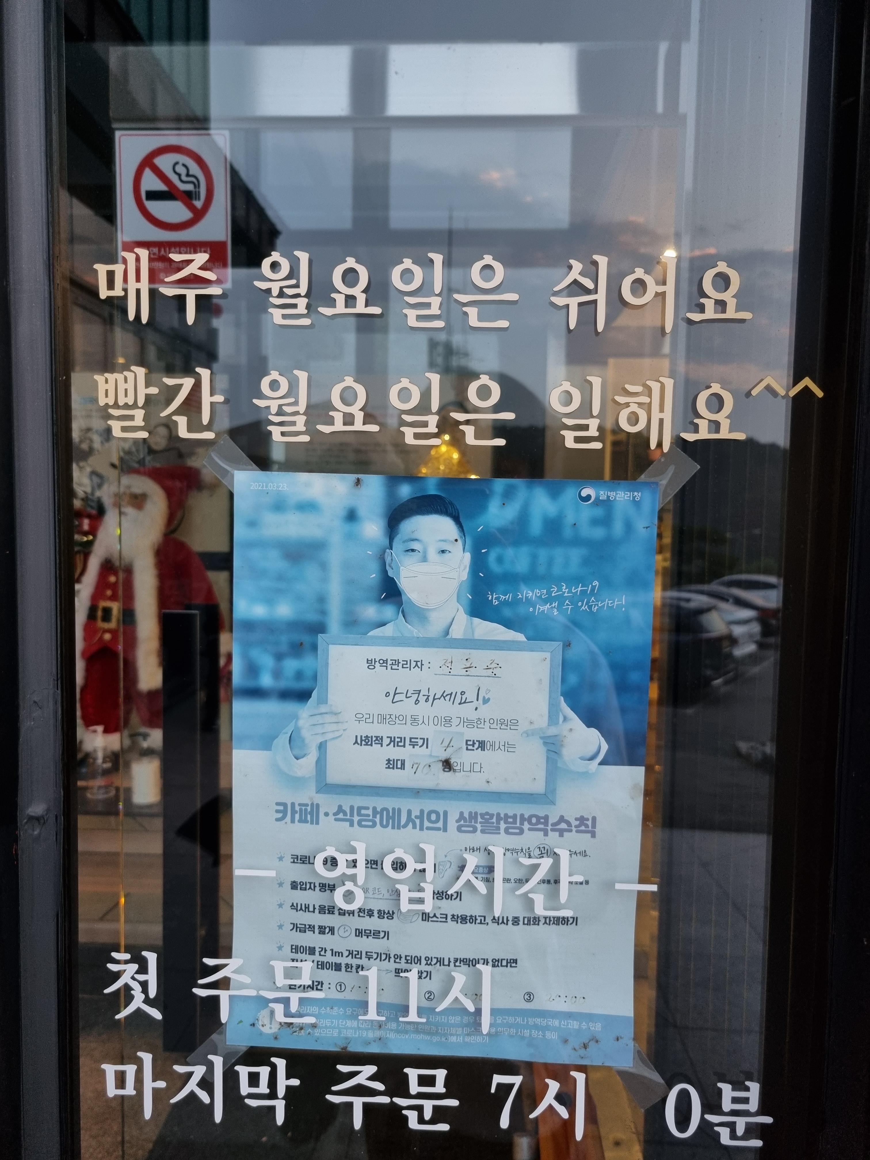 매 주 월요일은 휴무이지만 해당 일이 공휴일로 빨간 날이라면 영업을 하신다고 합니다.