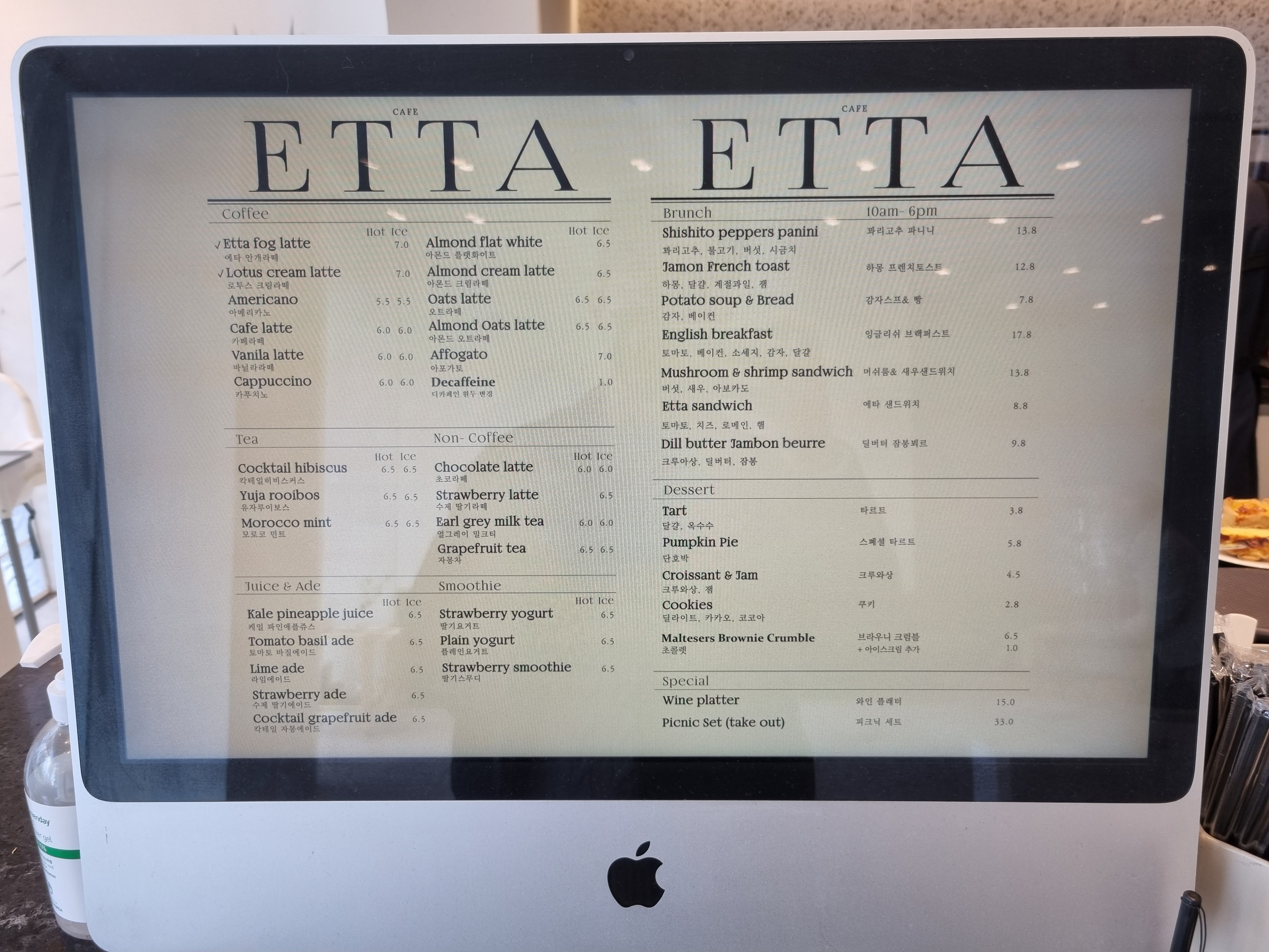 그렇다고 카페 에타가 사람이 없는건 아니지만 왁자지껄한 분위기가 아니라 평온한 분위기였고 여유를 느낄 수 있어서 좋았습니다.