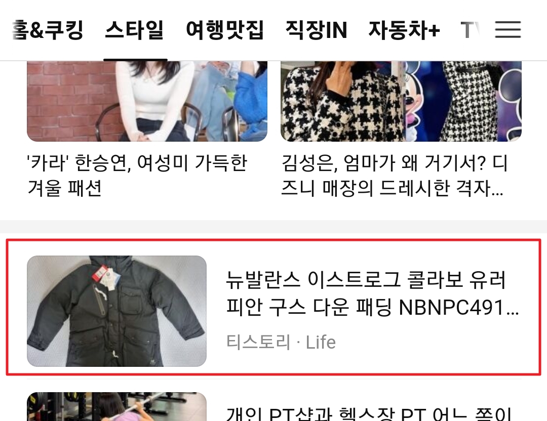 저번주에 작성한 뉴발란스 이스트로그 패딩 구매 후기글이 매우 감사하게도 다음 포털 사이트 메인에 게시됐었습니다.