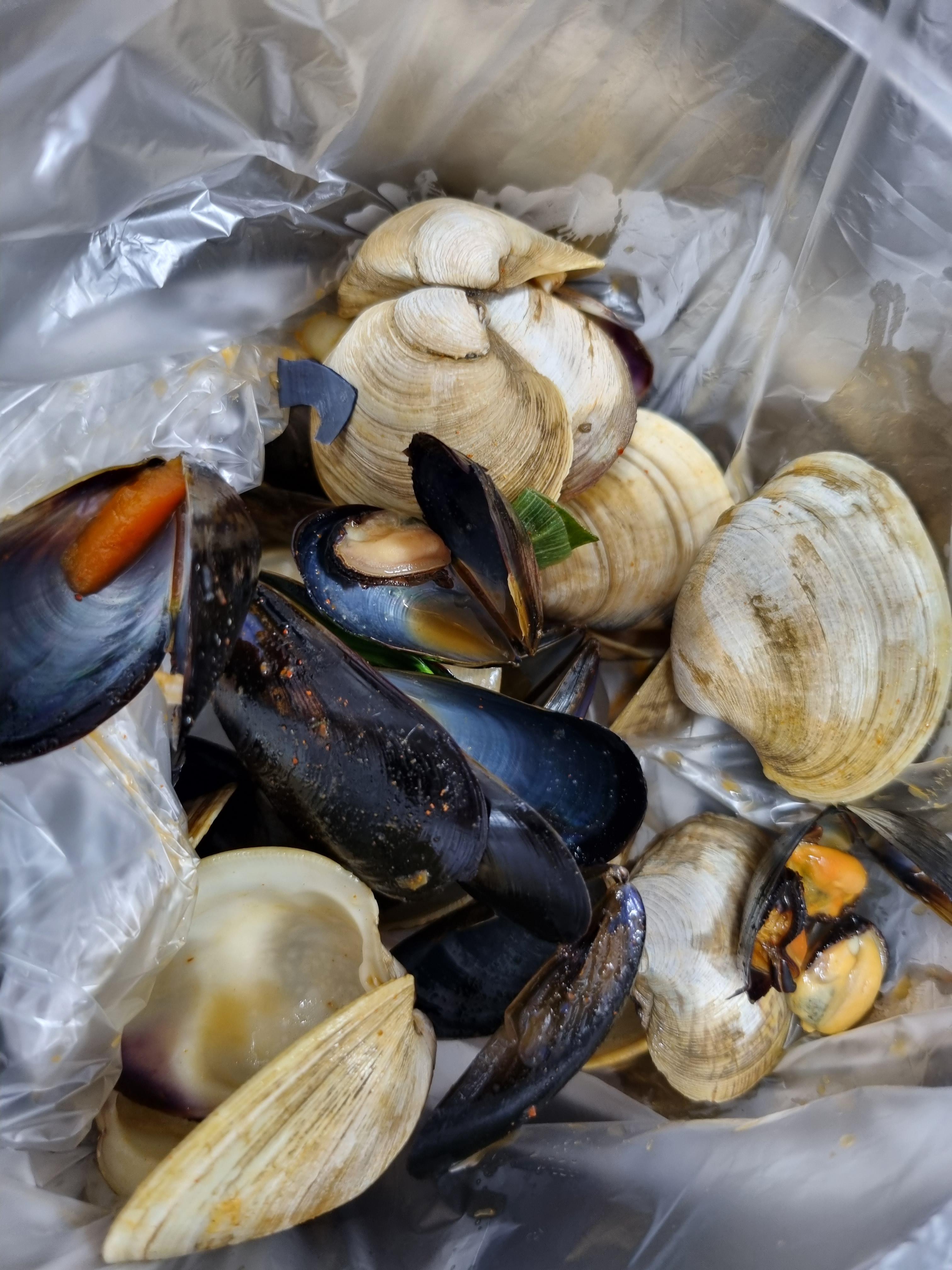 조개 살을 분리한 후 조개 껍데기들의 모습입니다.