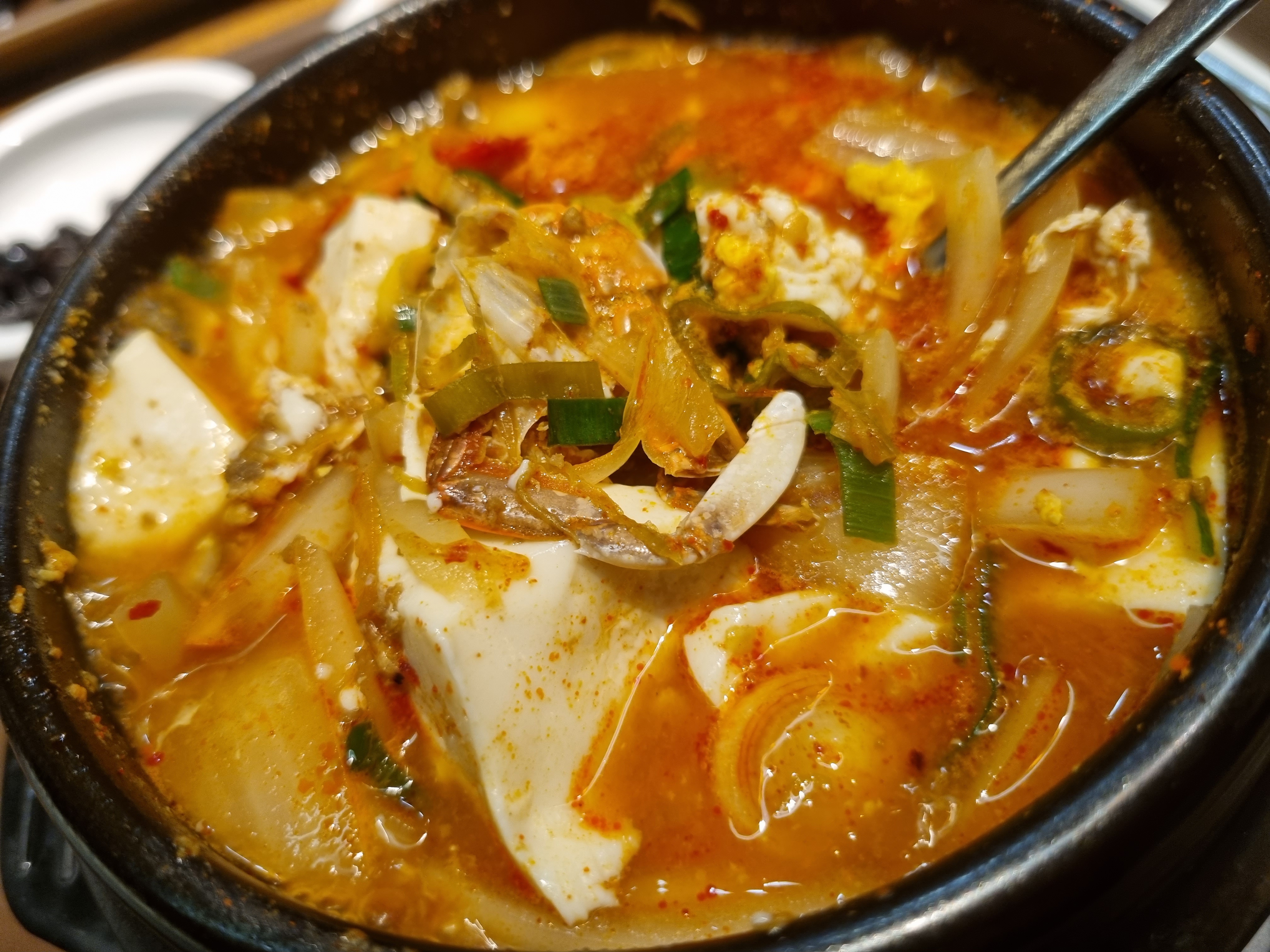 사진에도 보이시겠지만 귀여운 해산물들도 들어가있고 순두부찌개 답게 두부도 가득 들어있습니다.