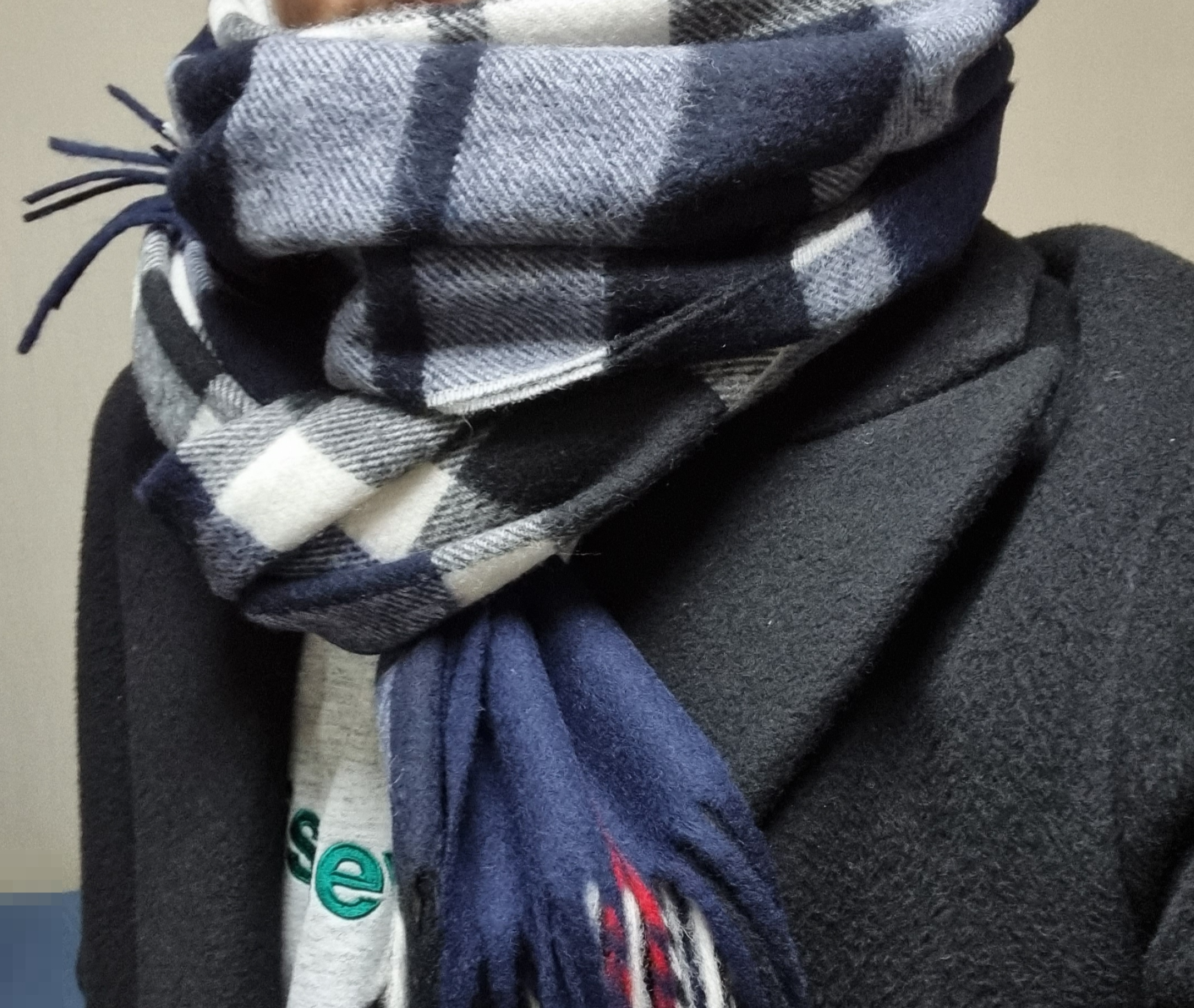 아브라함문 50cm 목도리 웨스트민스터 네이비 실제 착샷입니다.
