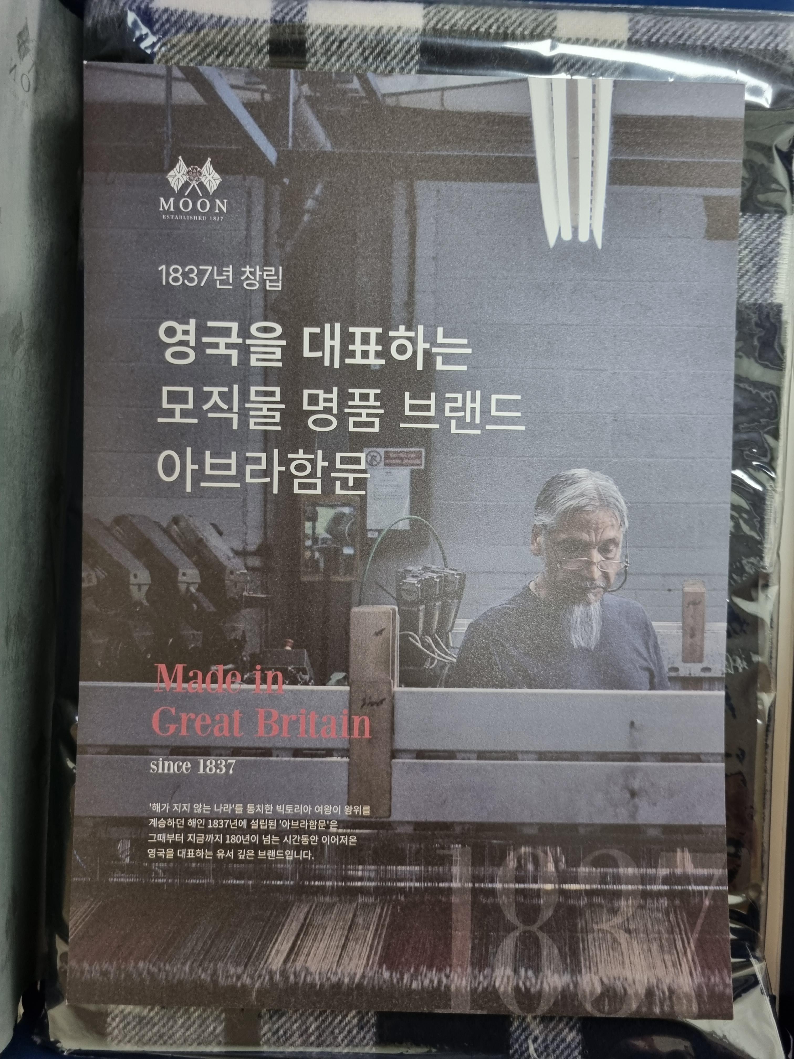 포장 박스를 뜯어보면 아브라함문의 설명과 깔끔하게 포장이 되어진 목도리를 확인할 수 있습니다.