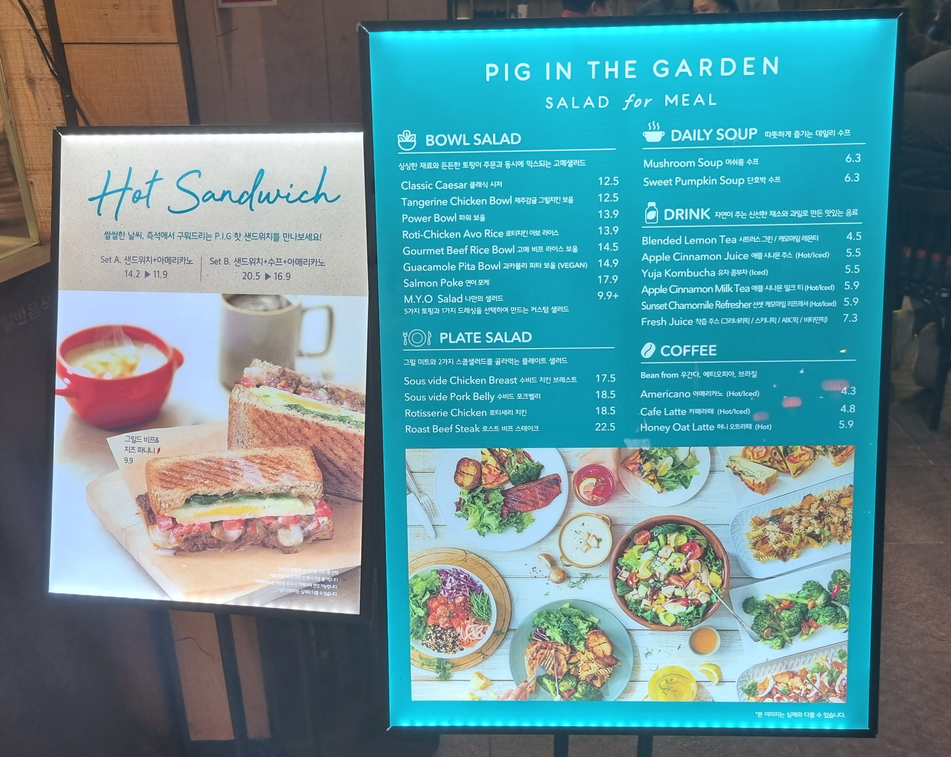 샐러드 가게에 돼지 그림이라니 무언가 언발란스 하지만 귀엽고 맛있게 태어나는 돼지니깐 이해하고 넘어갑니다.