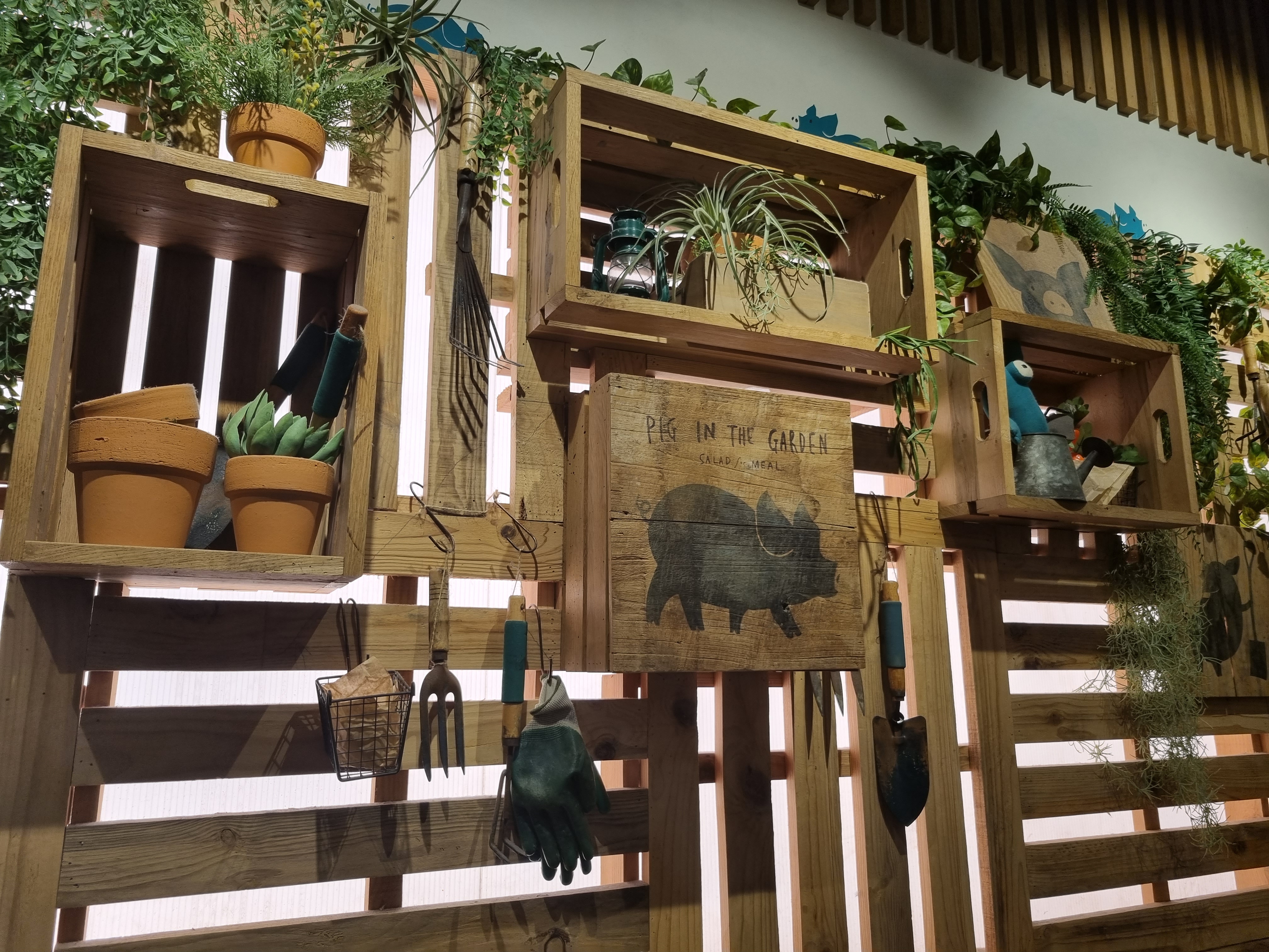 가게 내부에는 이렇게 가든 분위기가 나도록 인테리어가 되어 있고 앙증맞게 살찐 돼지도 한마리 그려져 있네요.