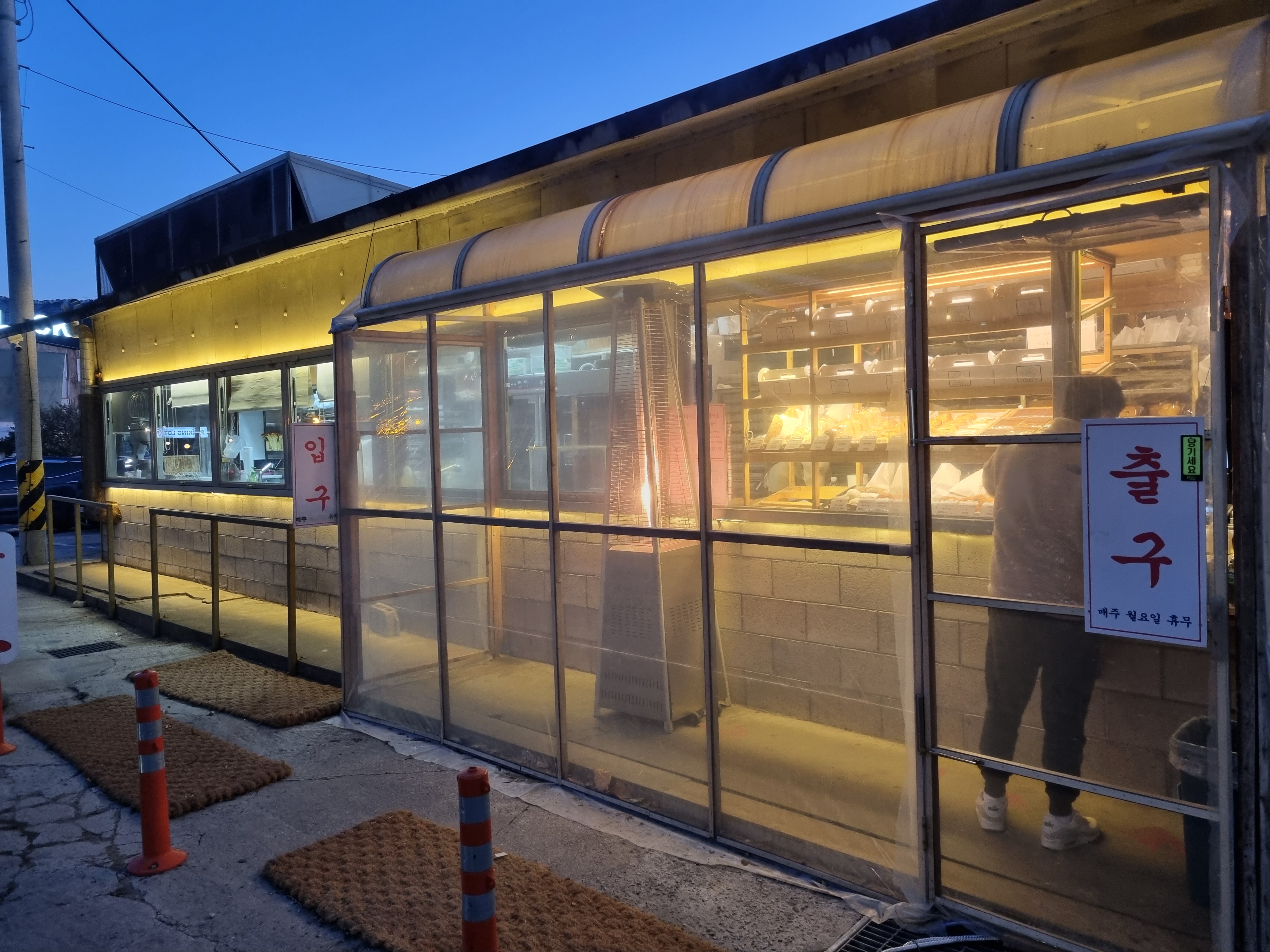 저 비닐문을 열고 들어가면 좁지만 빵을 살 수 있습니다.