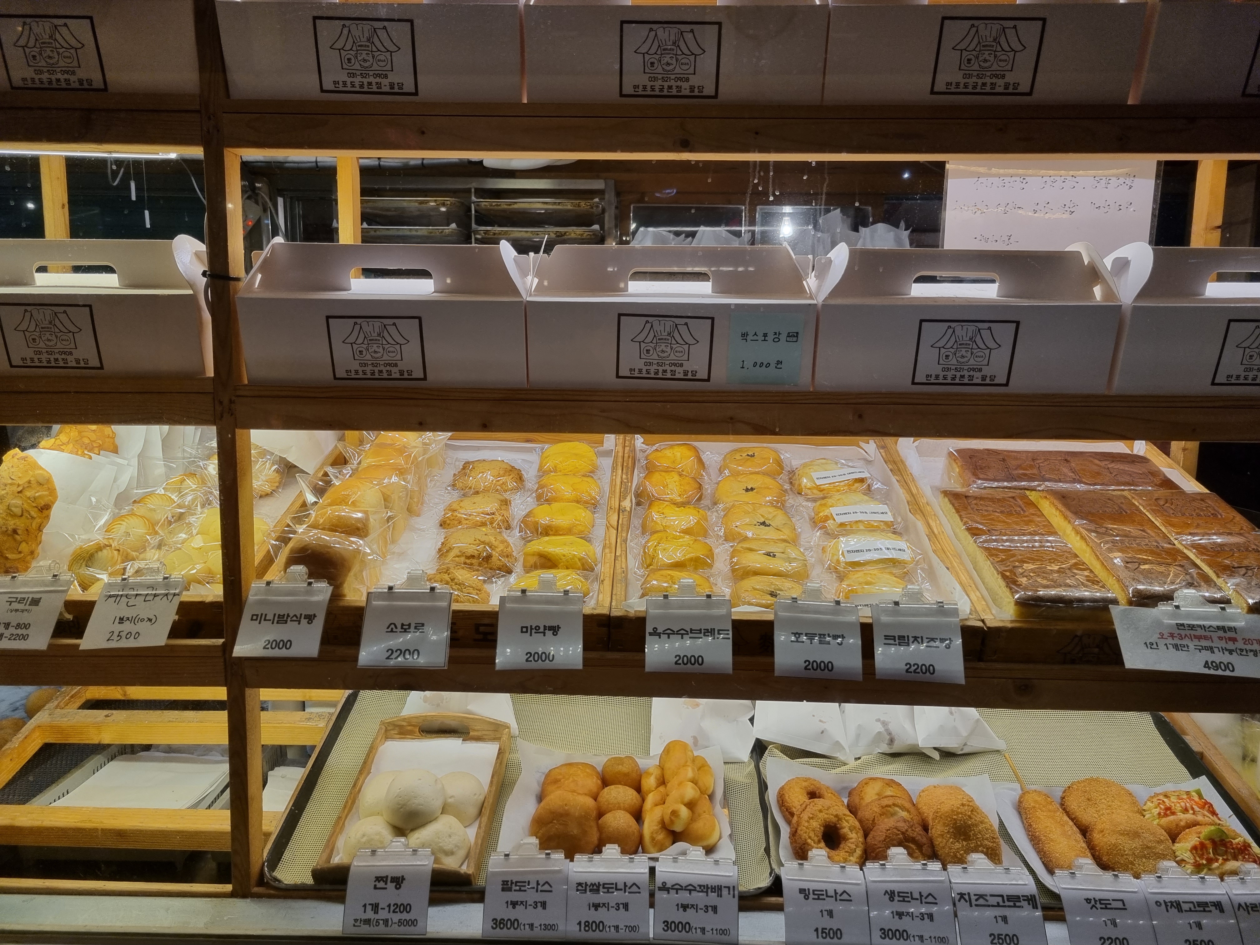 이번에 가본 면포도궁은 찹쌀 도나스, 찐빵, 고로케, 카스테라, 꼬베기 등 다양한 간식 및 빵 종류를 구매할 수 있습니다.